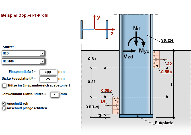 - Nachweis des Stützenprofils im eingespannten Bereich
