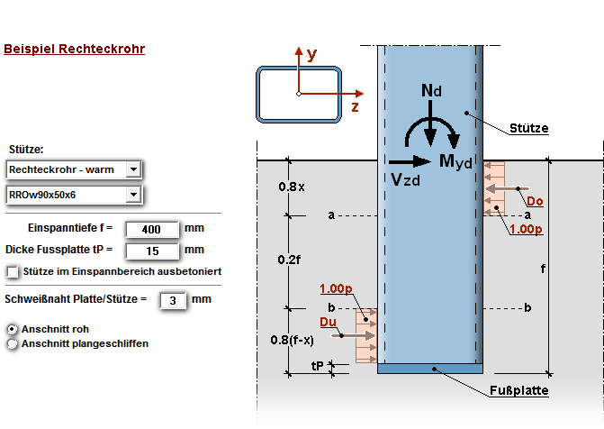 - Nachweis des Stützenprofils im eingespannten Bereich