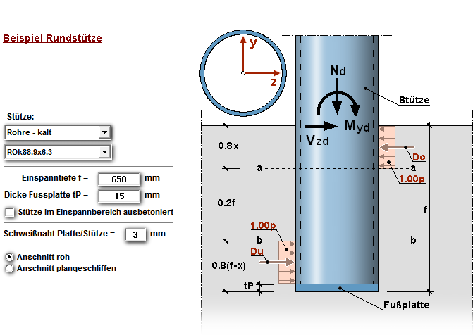 Für die Berechnung der erforderlichen Einspanntiefe werden zwei Verfahren angeboten: