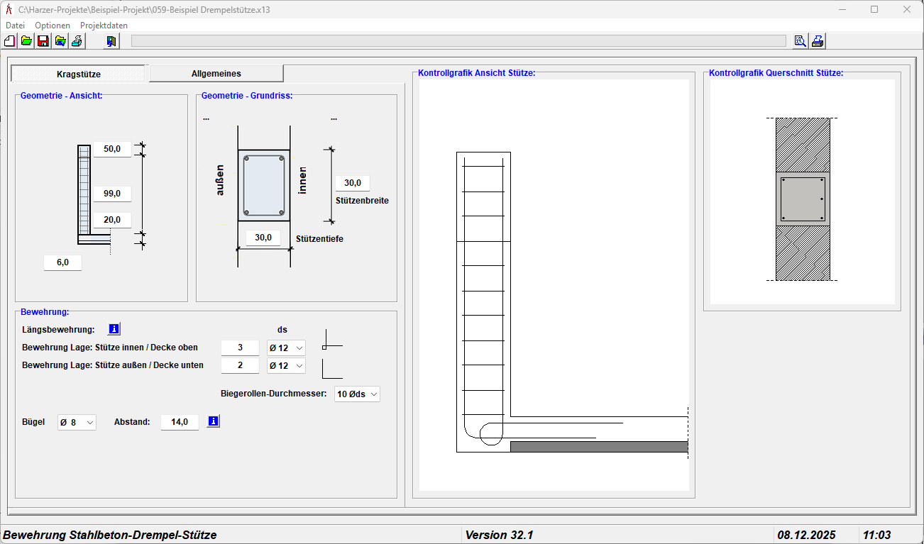 5. Bewehrung DrempelstützeKurzinfo: Die CAD-Variante Drempelstütze erstellt die Ausführungspläne für Stahlbeton-Drempelstützen auf Grundlage der mit dem Programm „Drempelaussteifung“ ermittelten Bewehrung. Sie liefert Ansichten, Schnitte und eine vollständige Biegeliste für die Ausführung der Stützen. --> klick auf das Vorschaubild > zur Programmbeschreibung < |