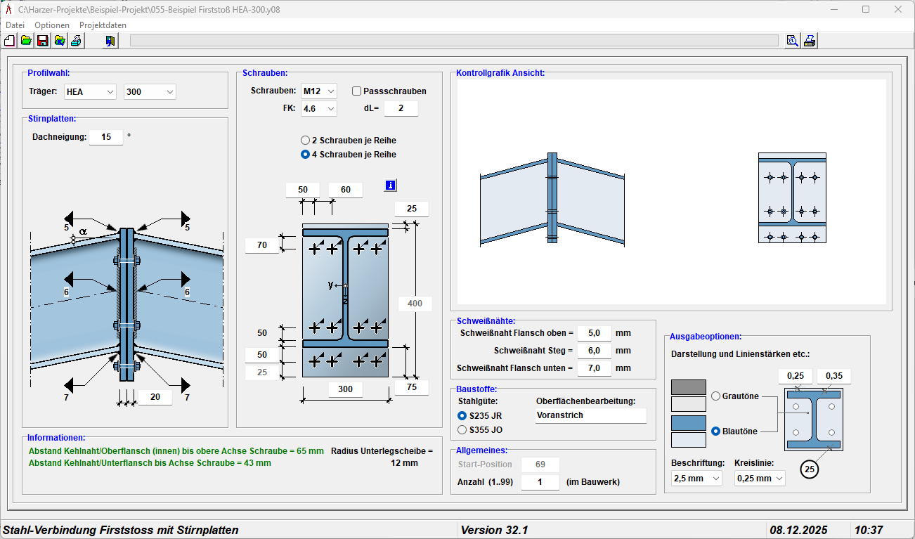 8. Stahlbau - FirststoßKurzinfo: Die Variante Stahlbau Anschluss - Firststoß erstellt die erforderlichen Ausführungszeichnungen zum gleichnamigen Statik-Modul für einen momentenbeanspruchten Träger-Träger-Anschluss mit Stirnplatte bei gleich geneigten Trägern. Die Ausführungszeichnung kann nach smartCADIng importiert und dort weiterbearbeitet und ergänzt werden. --> klick auf das Vorschaubild > zur Programmbeschreibung < |